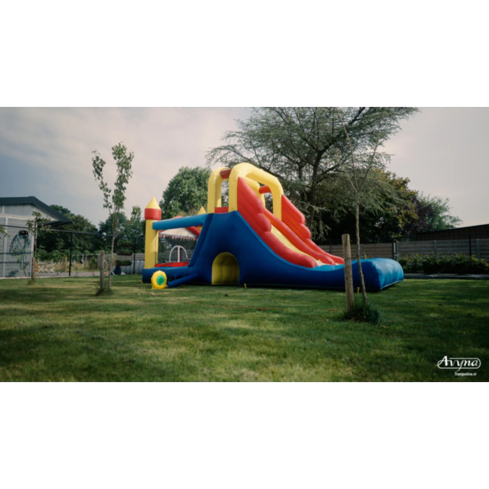 Met het Avyna Happy Bounce Double Mega Slide 4-1 springkussen haal je een spectaculaire speelattractie naar je tuin. Het springkussen beschikt over een dubbele glijbaan, klimwand, kruipruimte en een groot springoppervlak, waardoor kinderen urenlang actief kunnen spelen en plezier maken.